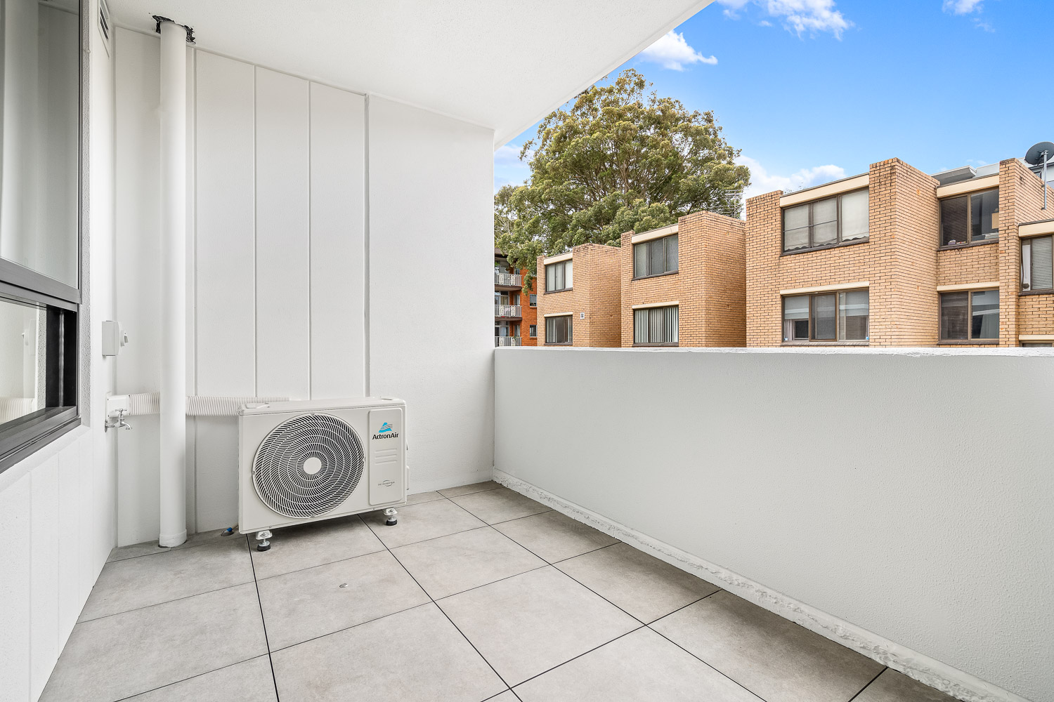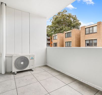 * Deep undercover balcony with floor-to-ceiling sliding door.
